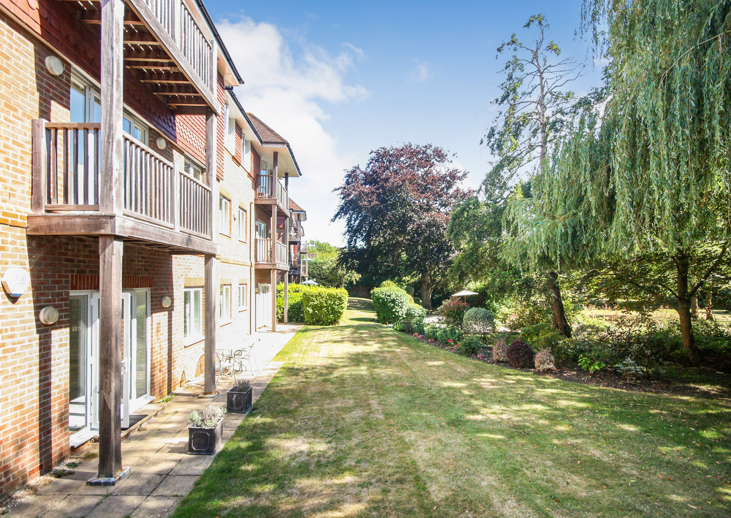 Outside: The property is set within stunning park-like gardens, featuring a communal seating area and a tranquil stream running through the grounds. The west-facing patio is perfect for outdoor dining or relaxing in the afternoon and evening sunshine. The apartment benefits from secure underground parking with allocated parking space and additional visitor parking. Private secure store located near the parking area.