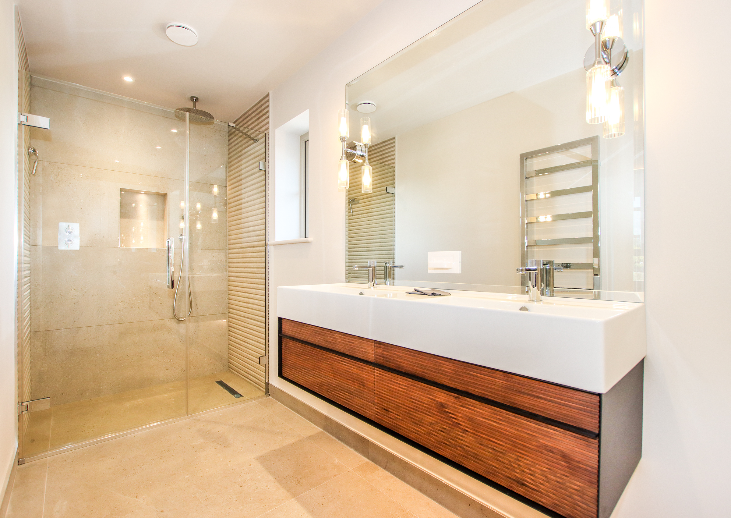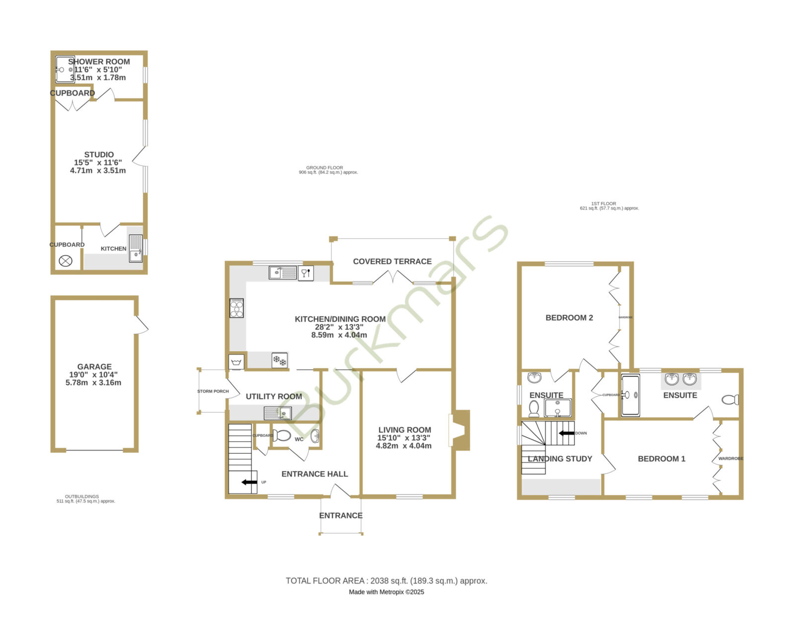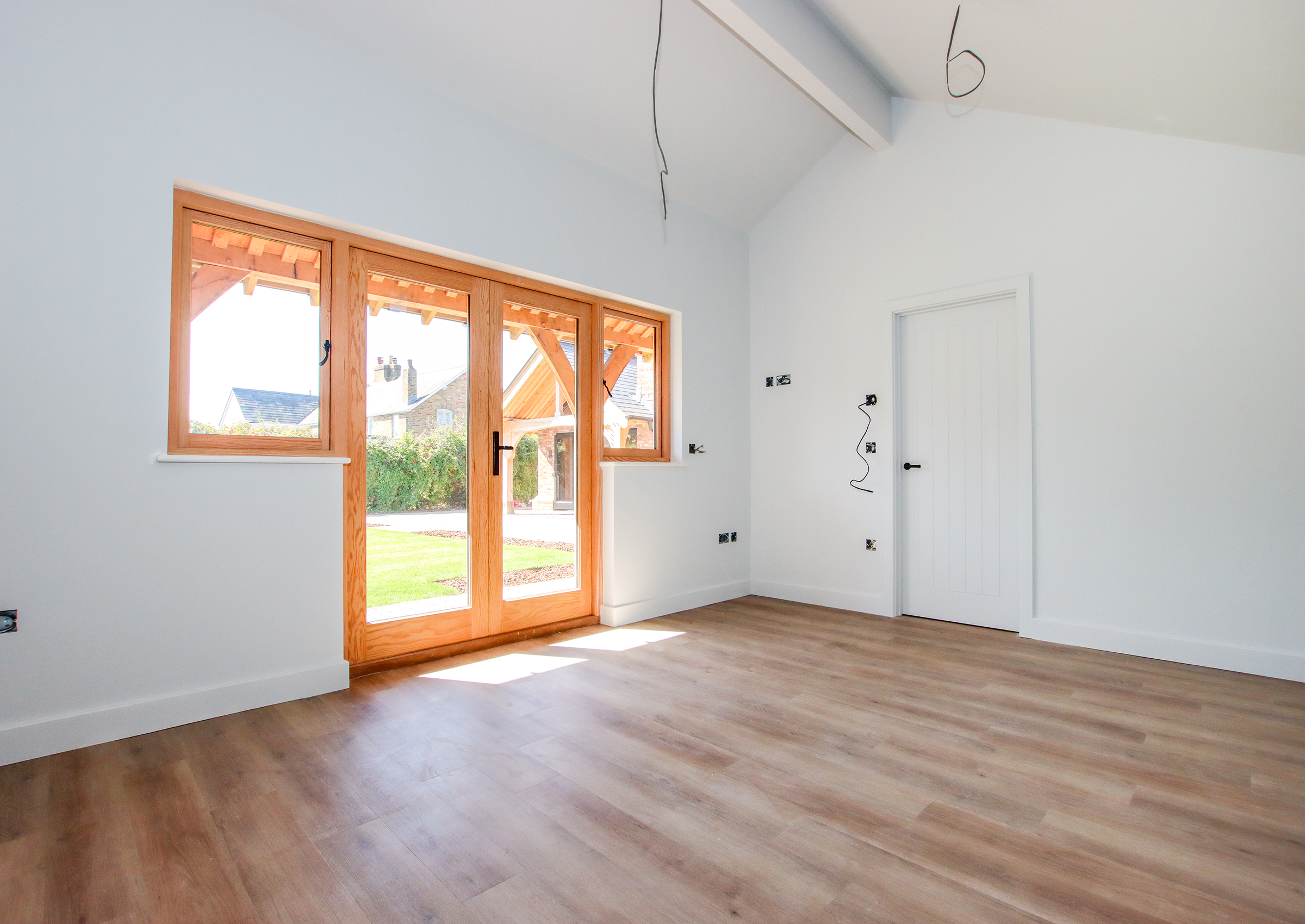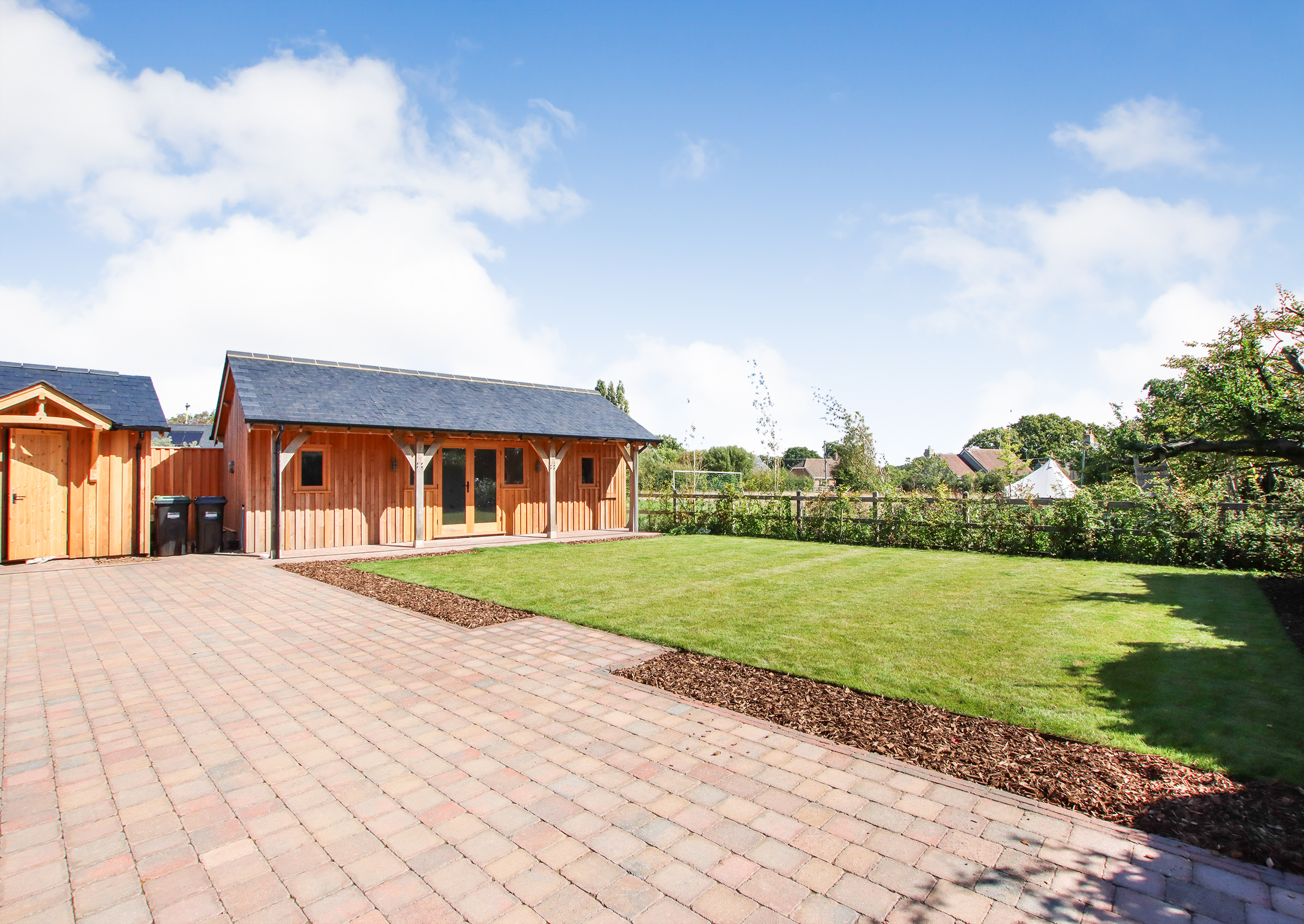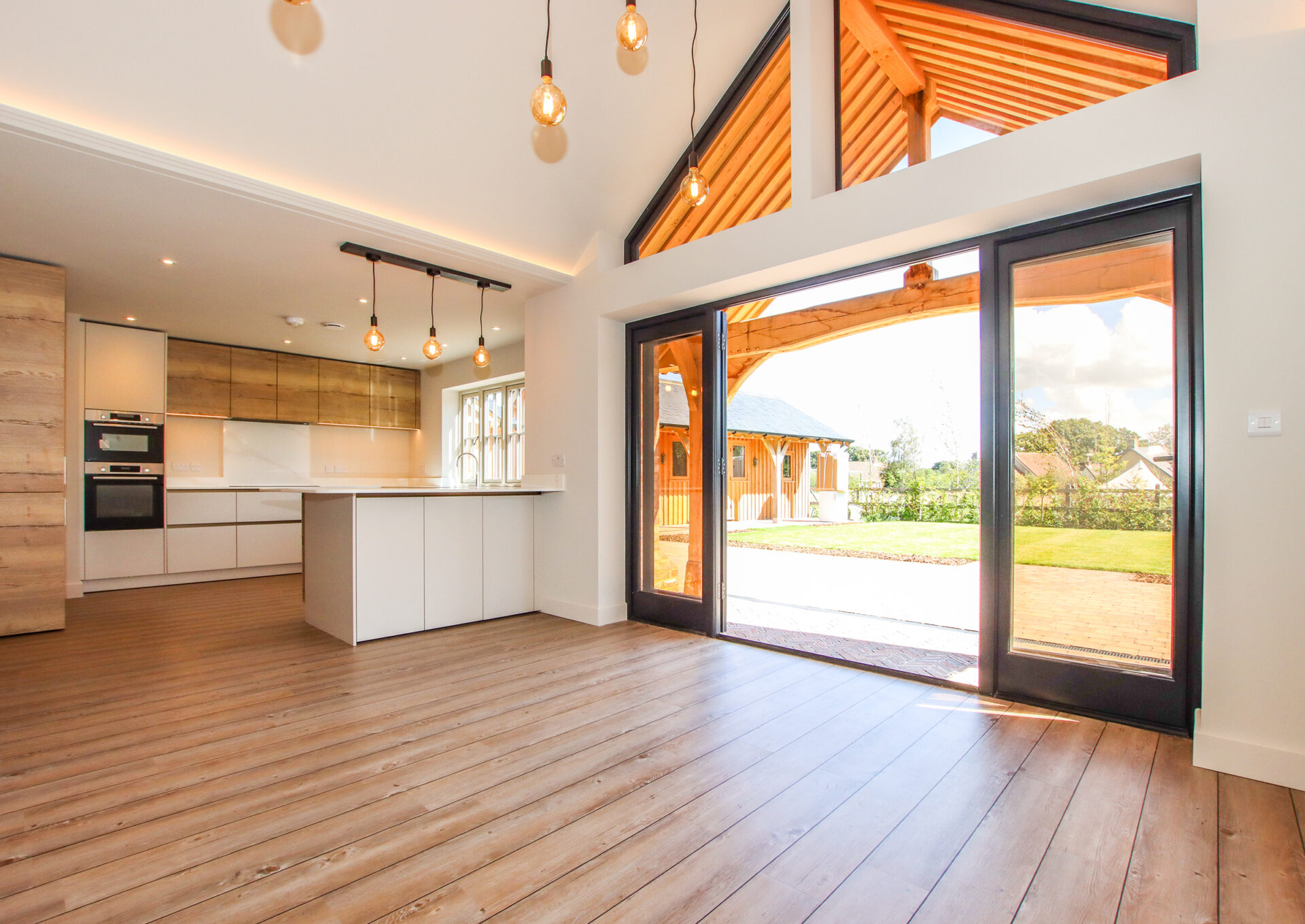 No expense has been spared in the creation of this bespoke home, where craftsman builders have lavished care and attention on every element. High quality materials are evident throughout, including oak-framed porches and individually made hardwood windows. A custom blended, colour-drench paint scheme throughout ties the finish together. Designed to be as practical as it is beautiful, the property incorporates modern, energy efficient systems including an air source heat pump, air circulation system, solar panels with battery storage and a pressurised hot water system. From the moment you step inside, the forest comes into view from a variety of aspects, bringing the setting into the heart of the home. The approach is through a sliding electric gate to a gravel driveway leading to the garage. with landscaped pathways to the front porch or side entrance. An EV charging point is also provided Inside, the light-filled hallway enjoys a view across the forest, there is a guest cloakroom with WC and a staircase rising to the first floor with a cupboard beneath housing the solar battery storage. Underfloor heating runs beneath Karndean flooring throughout the ground floor. The living room has a forest outlook to the front, complimented by a feature fireplace with a lined chimney ready for the installation of a wood-burning stove. A sliding pocket door opens into the dining area, a striking space with vaulted ceiling and French doors to the covered terrace. This flows into the kitchen, which has been fitted to a superb specification with Austrian cabinetry, a larder unit with power and lighting, quartz surfaces, a peninsula breakfast bar and a full range of Bosch integrated appliances including induction hob, double oven, fridge, freezer and dishwasher. The utility room provides further storage and space for laundry appliances, along with the plant cupboard housing the systems for the property. A side door opens from here to the drive and garage. A short path leads to the guest suite, a beautifully crafted oak-framed studio with Douglas fir cladding. This independent space has its own plant room, fully fitted kitchen, shower room and a main room with French doors to the terrace and garden, ideal for guests or extended family. Upstairs, the landing features a study area with fitted cupboards and a desk, set beneath a window framing views of the forest. The main bedroom is an elegant room, again looking out to the forest with bespoke wardrobes and an en suite shower room with twin basins. The second double bedroom also has a full range of wardrobes, its own en suite shower room and enjoys garden views. The main garden lies to the rear, enclosed by the main house and guest suite, creating a lovely setting. There are paved terraces in herringbone brick and blockwork, with lawn and borders. The property further benefits from mains drainage, offering convenience alongside its modern, energy-efficient systems.
