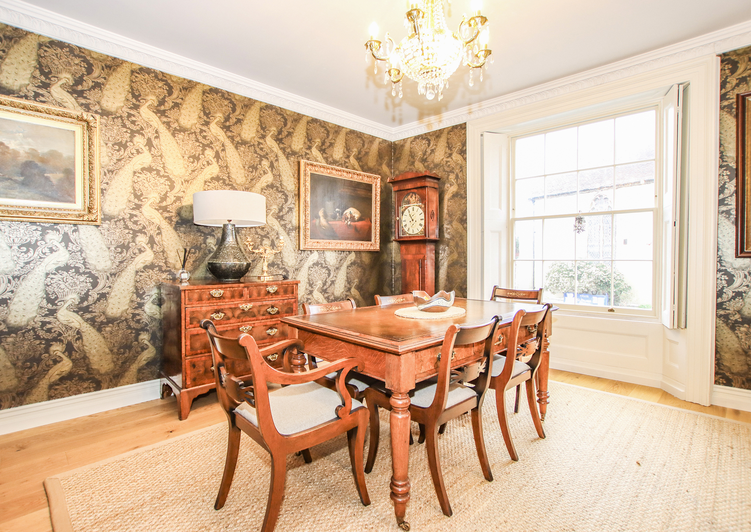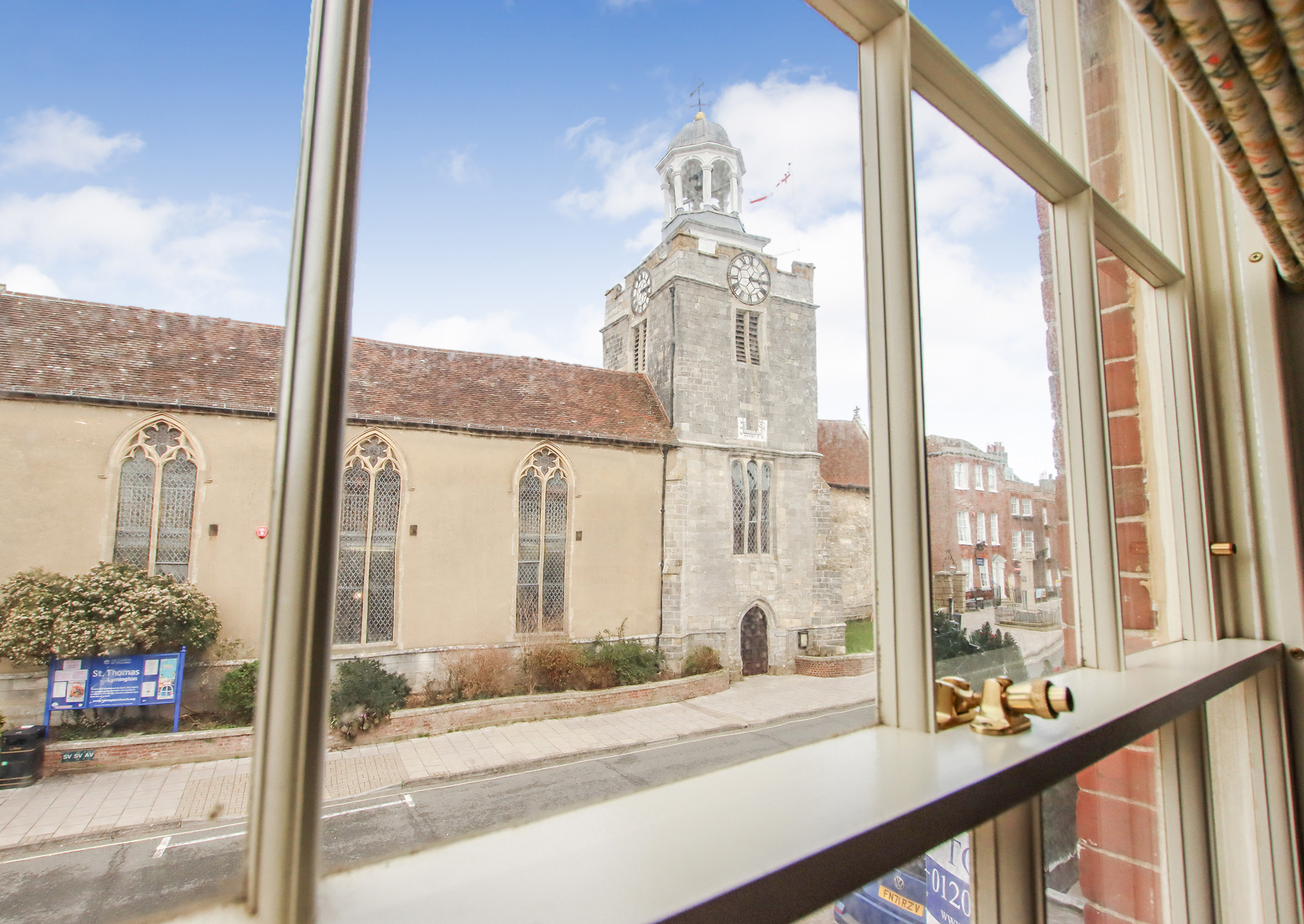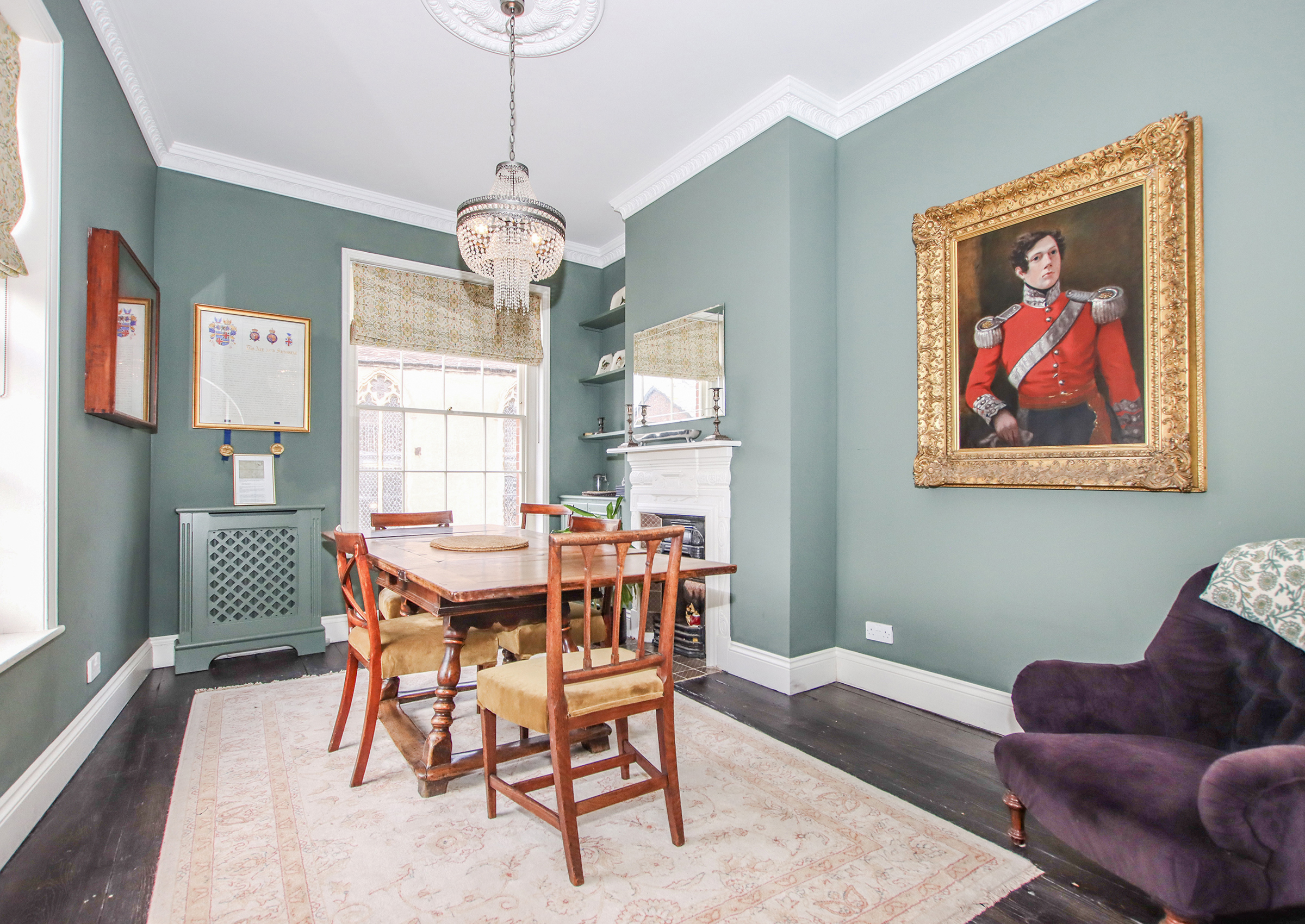 The upper storey delivers three well-balanced bedrooms, each offering excellent proportions. The principal suite benefits from a dual aspect alongside a tasteful en suite shower room. Two further bedrooms are served by a spacious family bathroom incorporating a separate shower enclosure. Throughout, period detailing has been carefully preserved, complemented by considered restoration including refurbished sash windows featuring wavy architectural glazing. Additional reassurance is provided by a secure entrance at ground level, combining heritage appeal with modern peace of mind. Altogether, this exceptional home represents a rare blend of historic elegance, thoughtful enhancement and an enviable town-centre position.