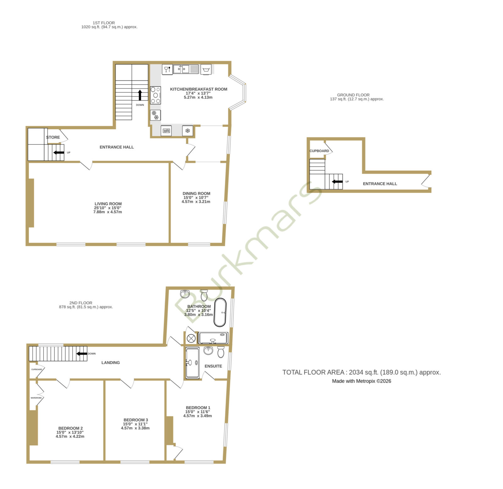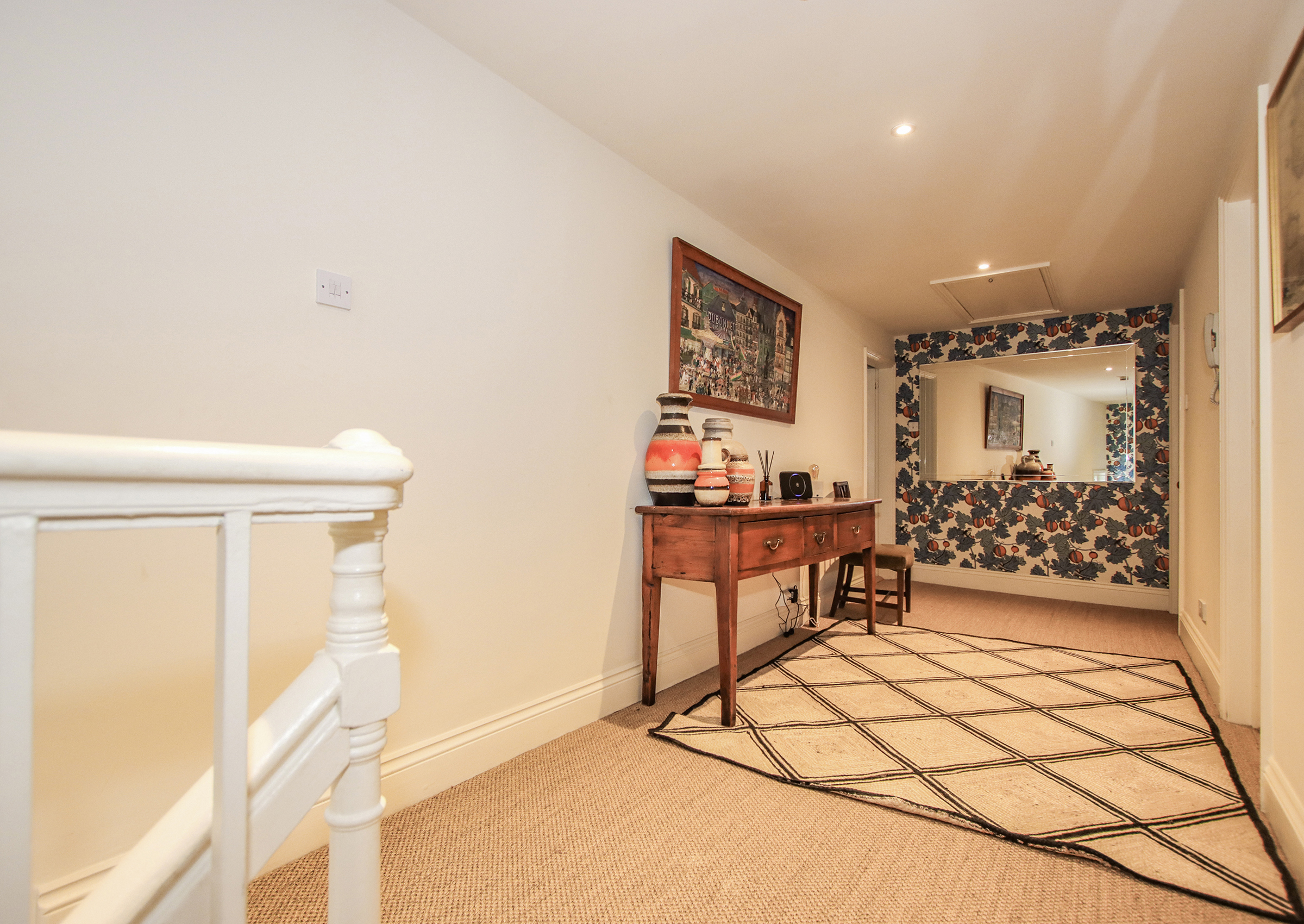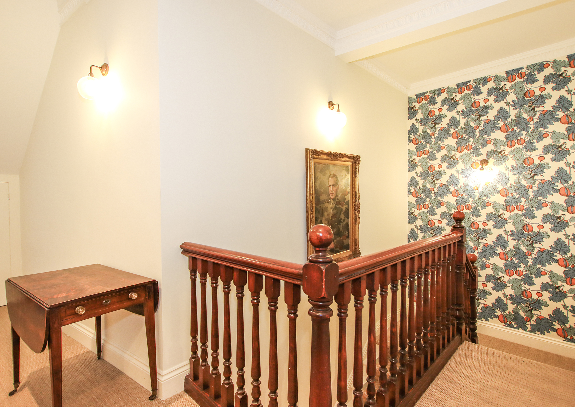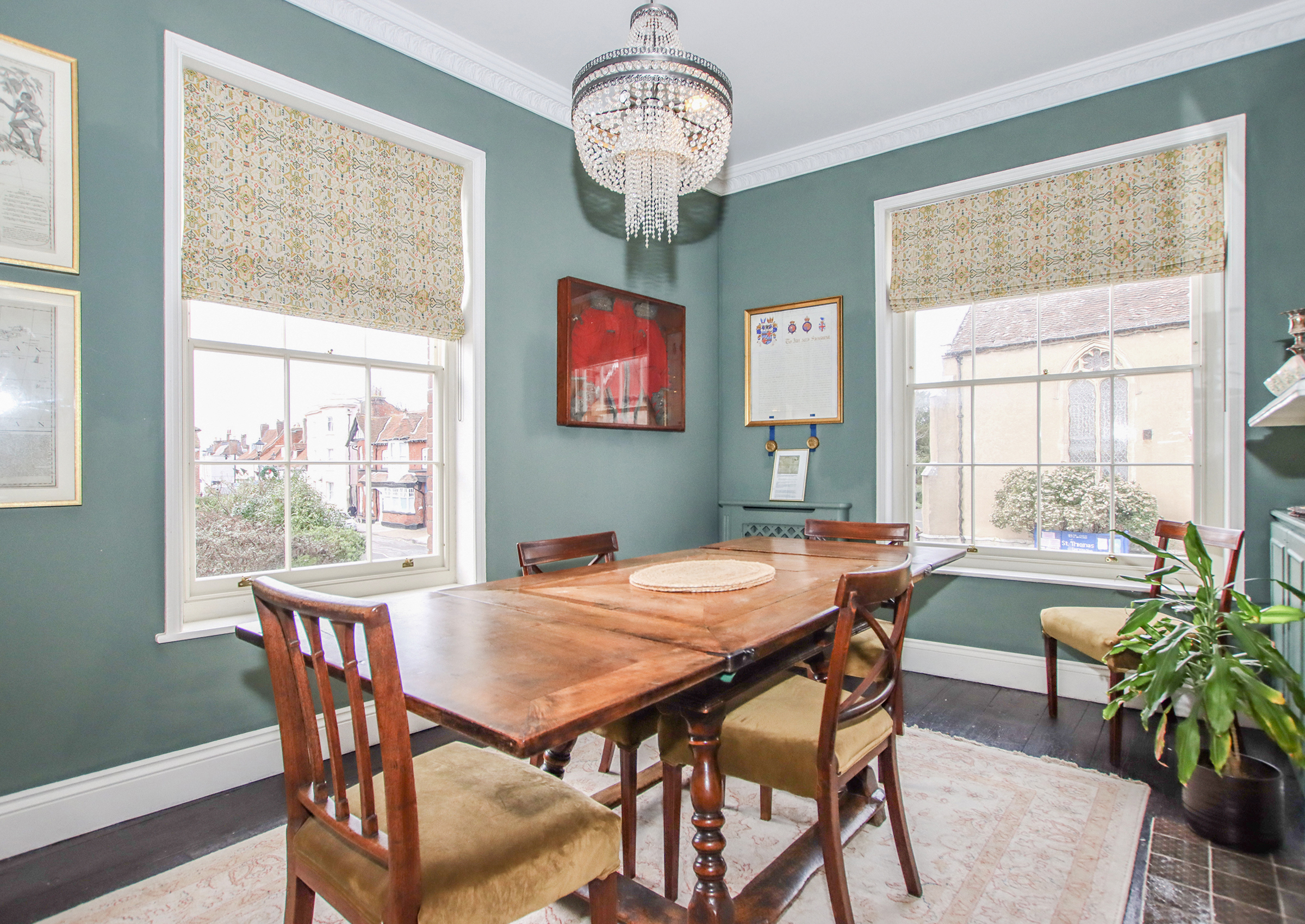 The upper storey delivers three well-balanced bedrooms, each offering excellent proportions. The principal suite benefits from a dual aspect alongside a tasteful en suite shower room. Two further bedrooms are served by a spacious family bathroom incorporating a separate shower enclosure. Throughout, period detailing has been carefully preserved, complemented by considered restoration including refurbished sash windows featuring wavy architectural glazing. Additional reassurance is provided by a secure entrance at ground level, combining heritage appeal with modern peace of mind. Altogether, this exceptional home represents a rare blend of historic elegance, thoughtful enhancement and an enviable town-centre position.