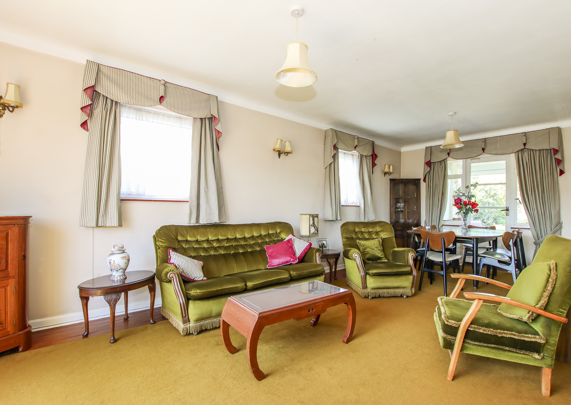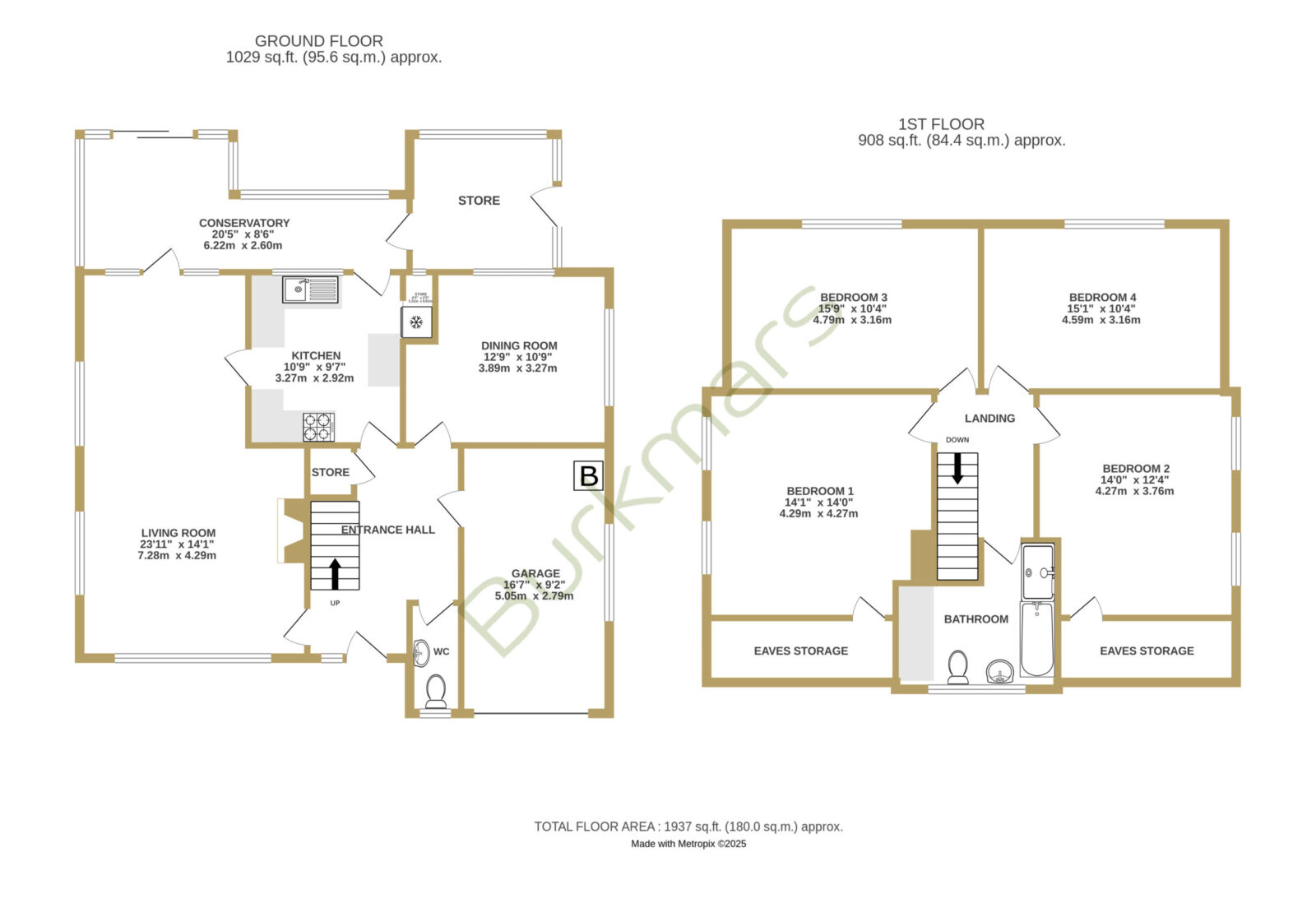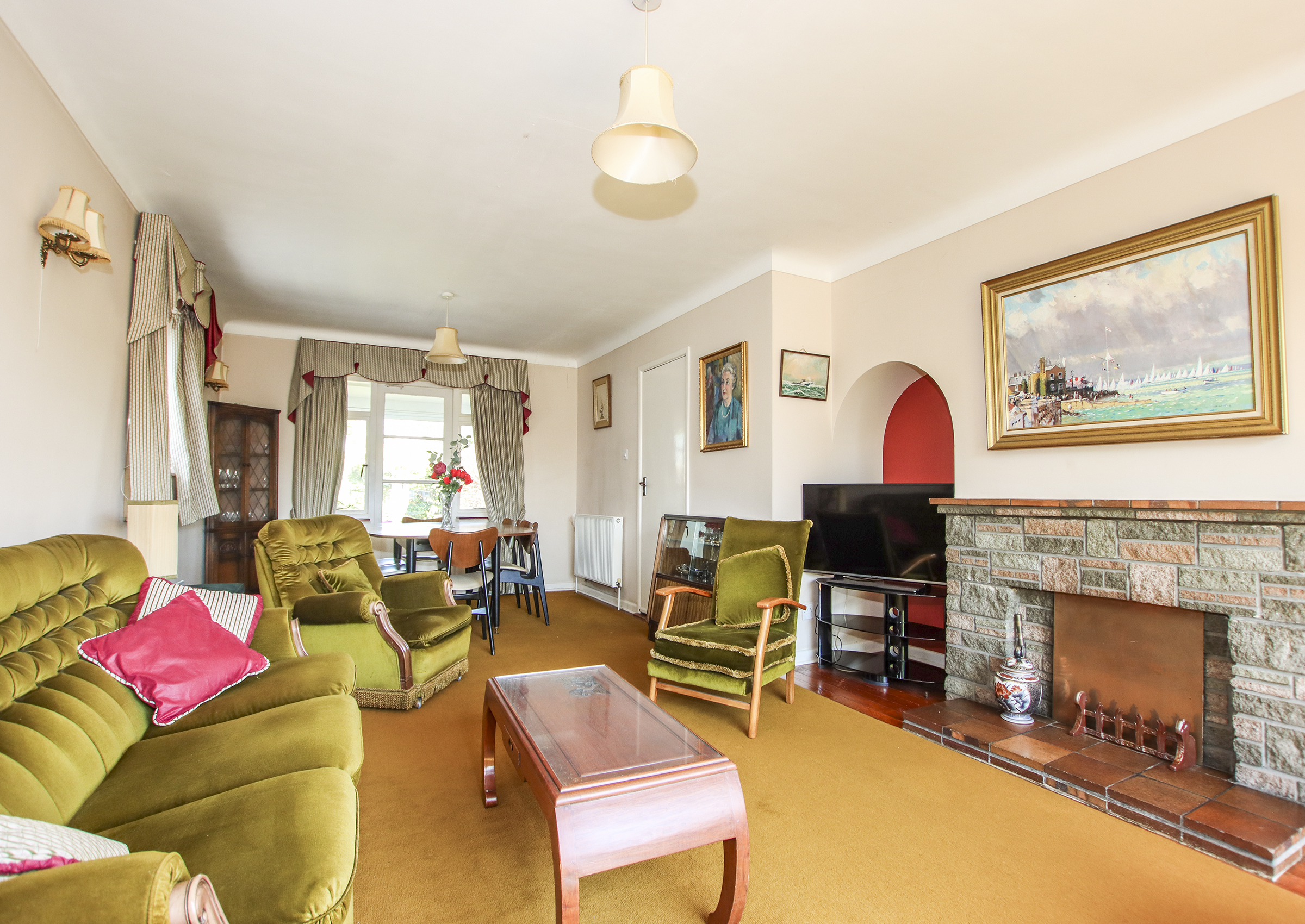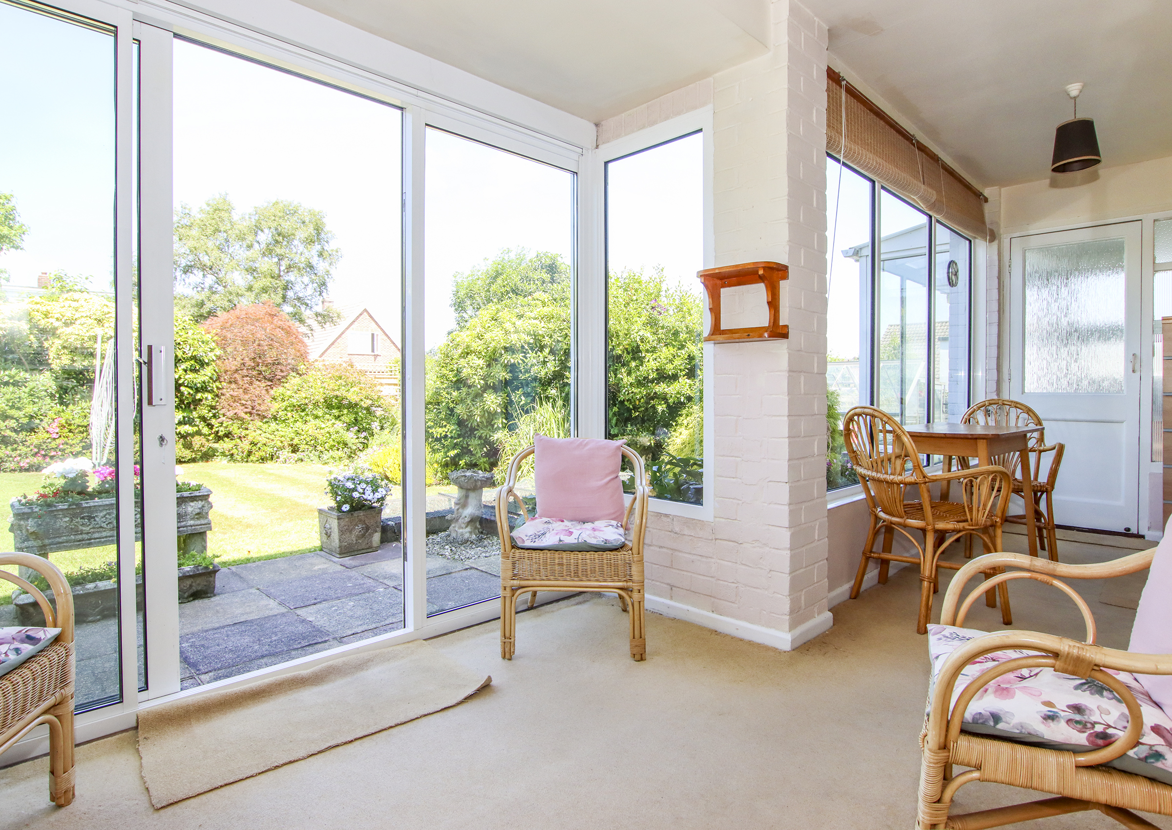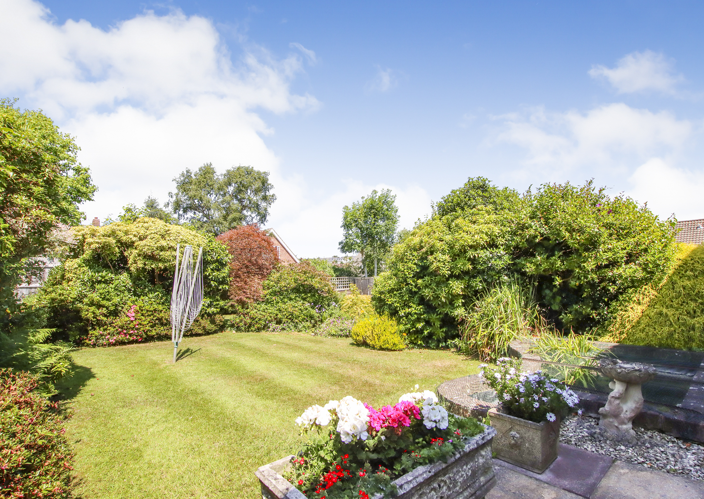 The front door opens to a welcoming entrance hall with stairs to the first floor, access to the integral garage, an understairs storage cupboard and a cloakroom with WC. The spacious, triple-aspect living/dining room has a stone fireplace housing an open fire. The kitchen is fitted with a range of pine units with space for a cooker, washing machine, tall fridge/freezer and a pleasant view over the rear garden. The ground floor bedroom five/separate dining room offers flexible use and is currently used as a second reception room. The conservatory has sliding doors leading to the patio and a peaceful outlook over the rear garden. There is also a useful store room with a door to the outside. Upstairs, there are four generously sized double bedrooms, two of which benefit from eaves storage. These are served by a modern family bathroom. Outside, the property occupies a good-sized, private plot. The front garden includes a tarmac driveway offering ample off-road parking, leading to the integral garage with twin opening doors, power and light. A low stone wall separates the garden from the pavement, with the remainder laid to well-maintained lawn. The rear garden is a key feature of the home, boasting a textured paved patio, ornamental fishpond, neatly kept lawn, and mature flower and shrub borders that provide excellent privacy and seclusion. The garden enjoys a sunny westerly aspect.