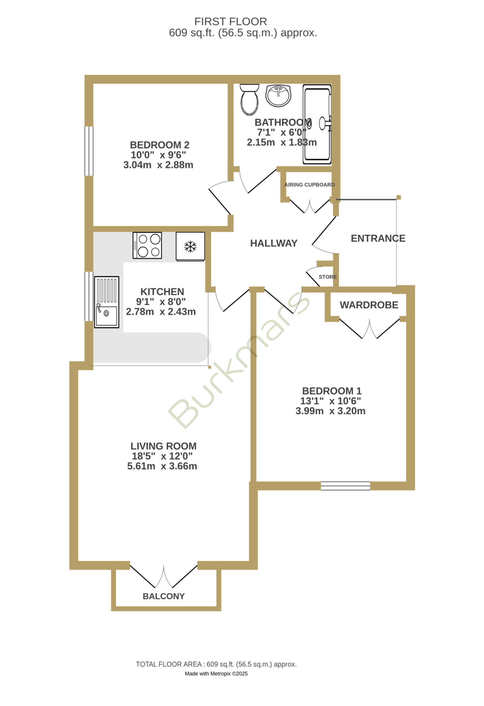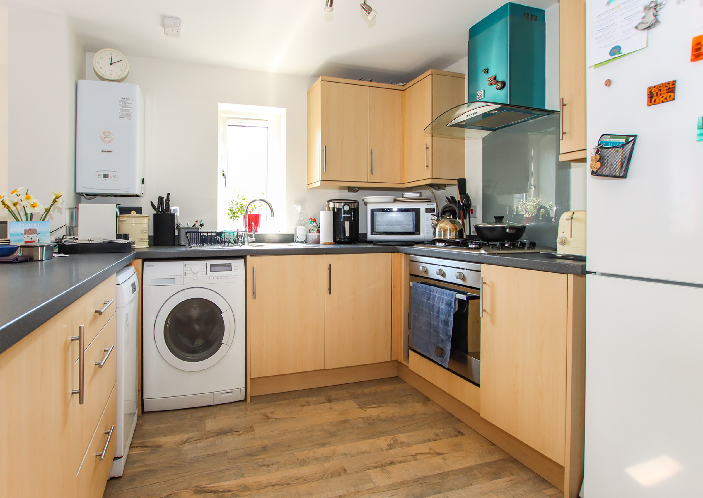 From the communal hallway, stairs lead to the first floor where the front door of the apartment opens into an entrance hall with a storage cupboard and an airing cupboard. The open-plan living room features French doors leading to a small covered balcony and is separated from the kitchen by a breakfast bar. The well-equipped kitchen includes an integrated oven and hob, a range of cabinets and space for other appliances. The apartment offers two bedrooms that share a modern shower room. Outside, there are communal gardens, on the south and west side of the building, an allocated parking space, visitor parking, and an external cycle store and refuse store. Lease: 125 years from 2013 Service charge: £1244.73 per annum. Ground rent: £175 per annum.