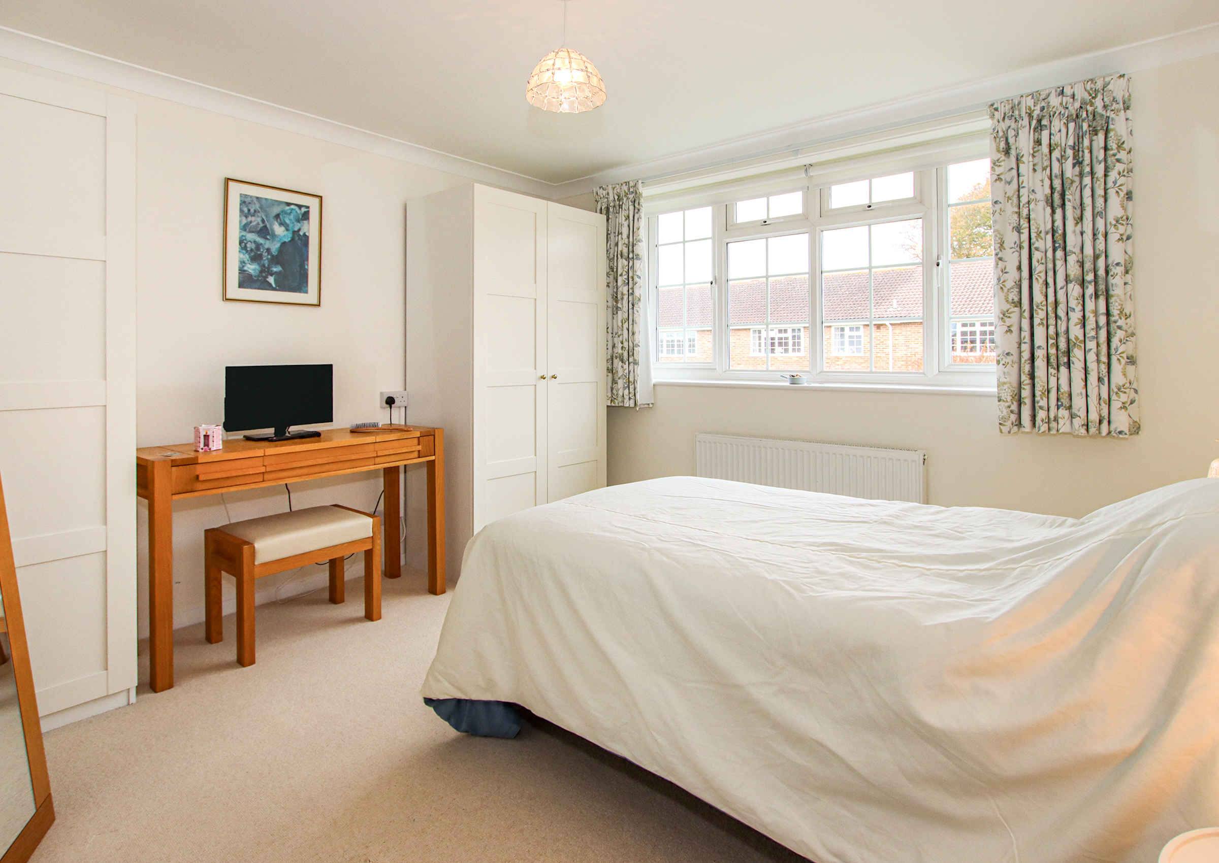 The property has been thoughtfully updated in recent years, including redecoration throughout, new carpets, a modernised heating system, updated electrics with additional sockets (some incorporating USB ports), and wiring provision for a stair lift if desired. Outside: The front garden features a lawn on either side of the path leading to the front door. A garage is located in a nearby block, with both off-road and visitor parking available.
