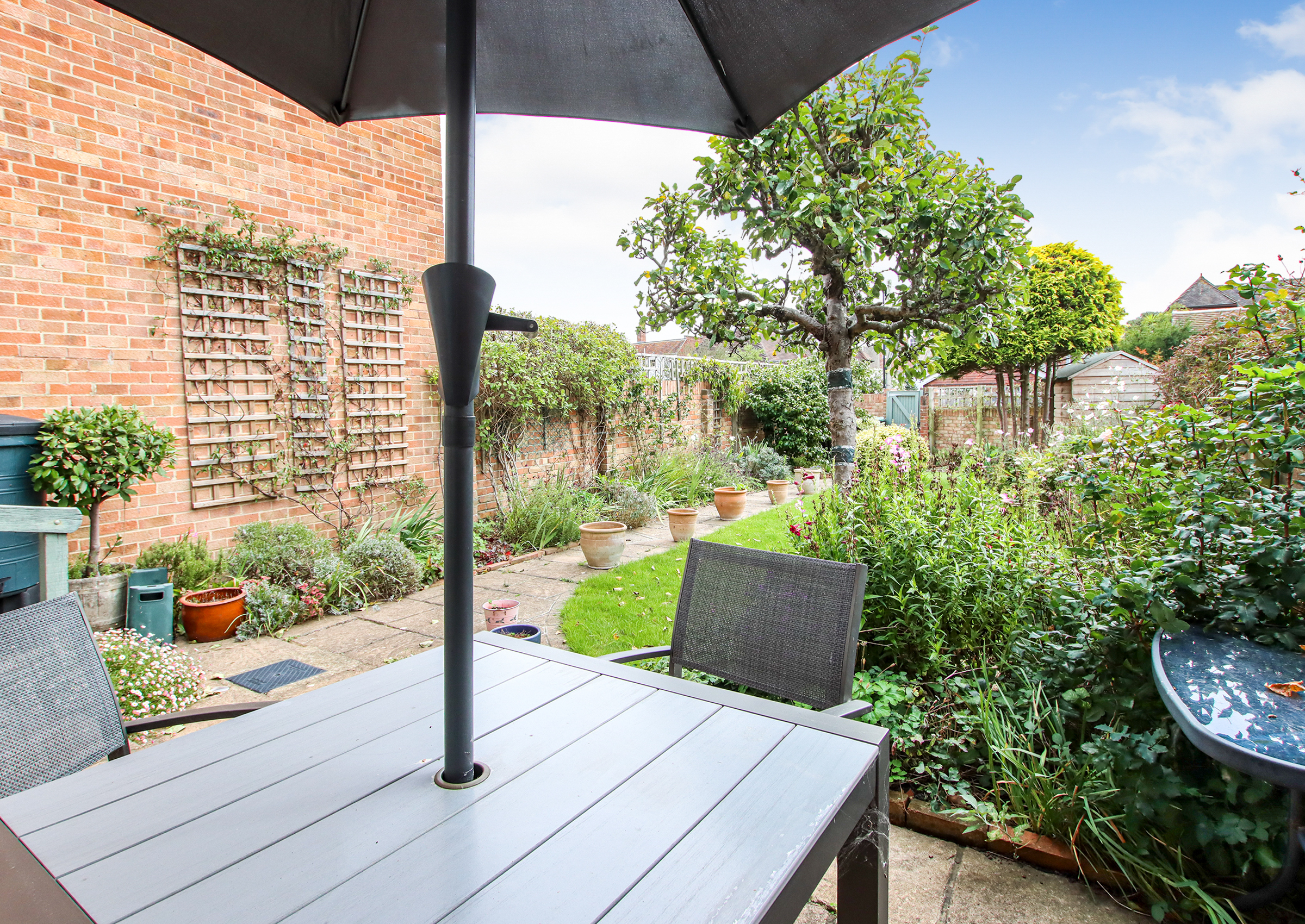A well-presented three-bedroom home with an en suite shower room and a south-facing walled rear garden, set in a central yet quiet location just a short distance from M&S Food Hall, Waitrose, and the High Street. CHAIN FREE