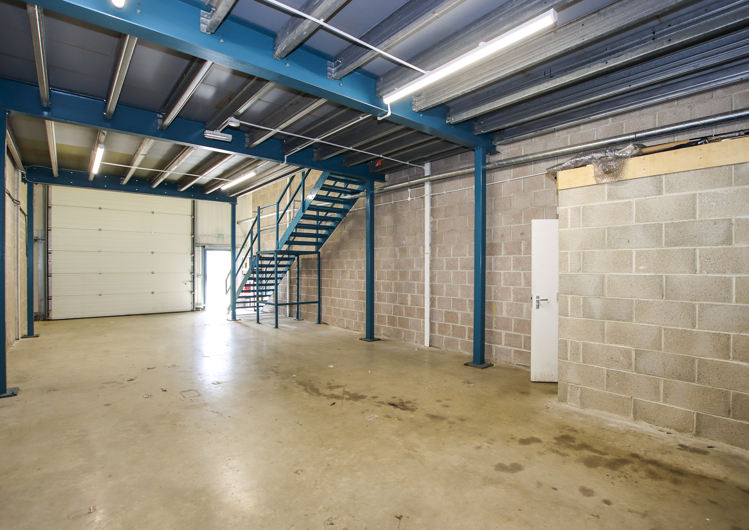 The unit is available to let on a new 6-year lease, with a break option at the end of year 3. The rent is subject to V.A.T. Total floor area: approx. 1,500 sq ft (139.35 sq m) Ground floor: approx. 890 sq ft (82.71 sq m) with a cloakroom/WC located in one corner First floor mezzanine: approx. 633 sq ft (58.82 sq m) The accommodation is arranged over two levels, with a ground floor open-plan workspace and a useful mezzanine area above, ideal for additional storage or office use. Roller door and personal door access to the unit. Three phase electrics.