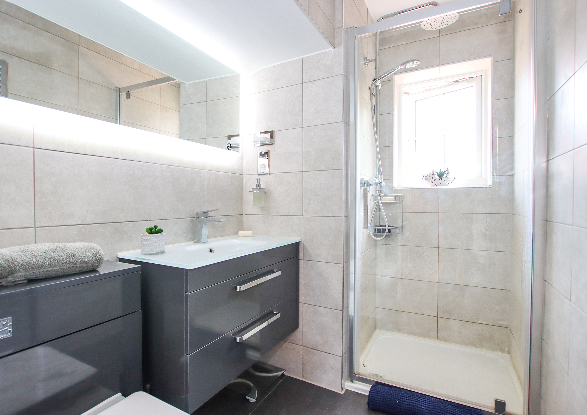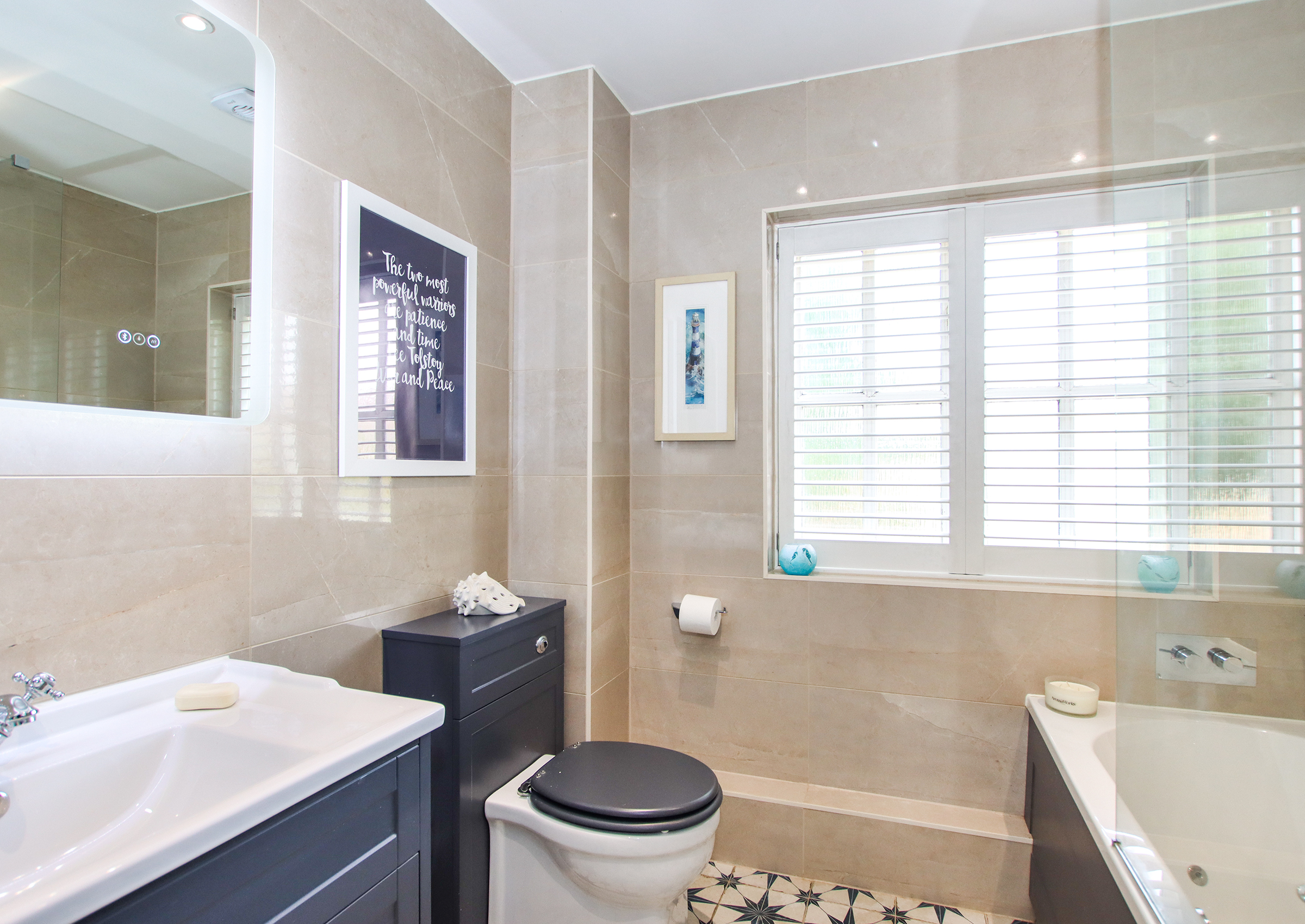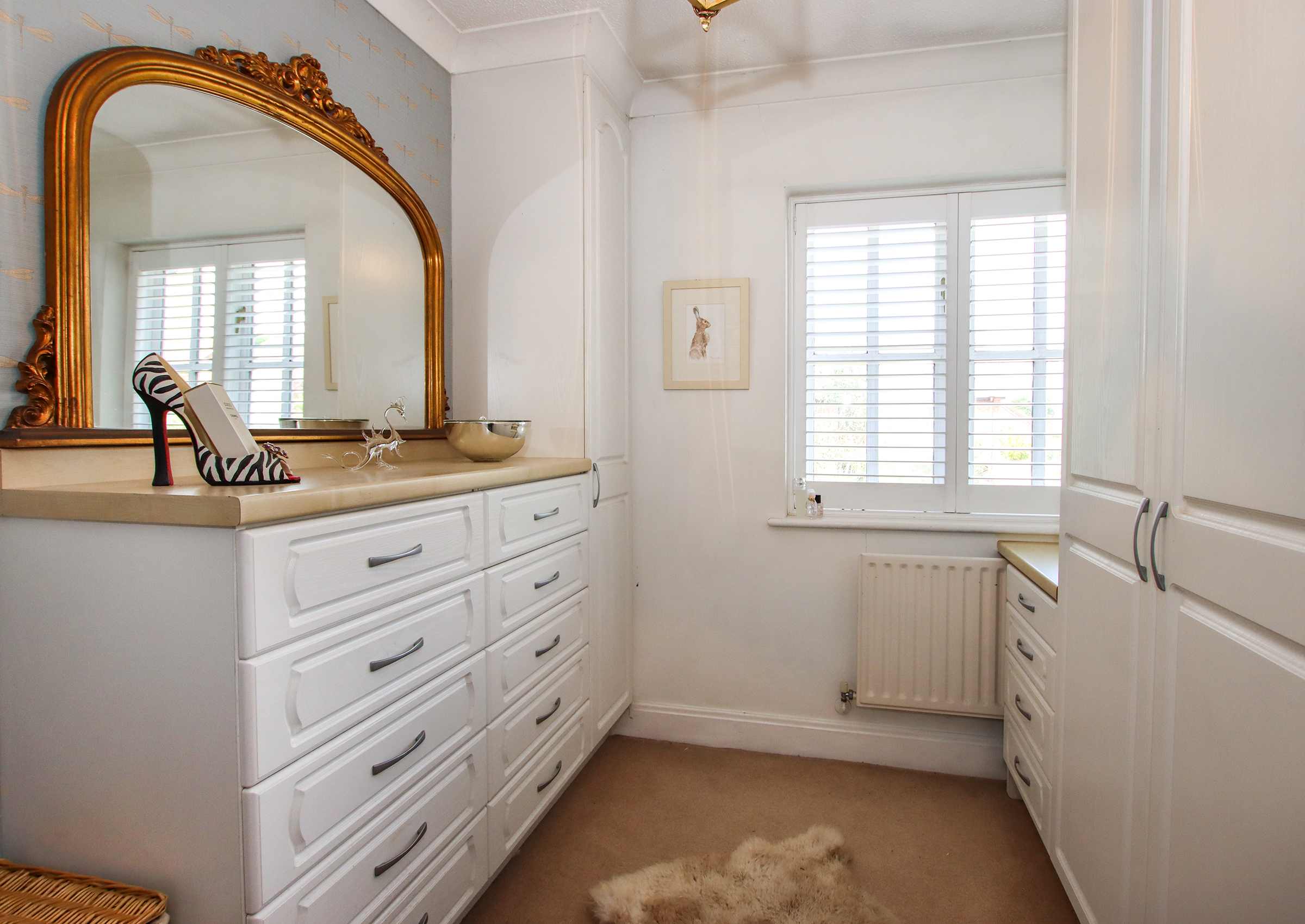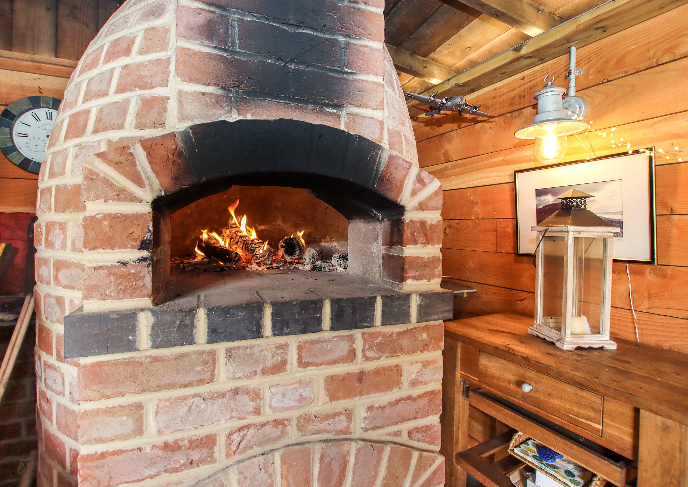 The front door opens into a welcoming hallway with stairs rising to the first floor and a cloakroom with WC beneath. To the front of the house, the spacious living room features a bay window and a fireplace with a Clearview wood-burning stove. Double doors lead through to the dining room, which in turn opens into a bright conservatory with UV-filtering blue glass and underfloor heating — a comfortable year-round space with access to the garden and garage. The kitchen is fitted with a comprehensive range of cabinets topped with oak work surfaces and includes a Quooker boiling water tap, gas hob, electric oven and integrated dishwasher. The kitchen flows into the dining room, creating a sociable and practical layout. A double-aspect study offers a peaceful space for working from home. Upstairs, the principal bedroom includes fitted wardrobes and an en suite shower room. There are two further double bedrooms and a fourth bedroom currently arranged as a dressing room with a range of built-in wardrobes and drawers. The family bathroom serves the remaining bedrooms. Both bathrooms feature illuminated mirrors with integrated Bluetooth speakers. Outside, the front garden has been attractively landscaped with areas of paving, mature shrubs including Acers and a brick-paved driveway providing off-road parking leading to the tandem-length garage. The garage includes a utility area with space for a washing machine and tumble dryer, as well as a personal door to the garden. The rear garden is beautifully designed with lawn, raised borders and patio seating areas. A standout feature is the bespoke oak-framed outdoor kitchen complete with a brick pizza oven, alongside a high-quality cedar Crown Pavilion – perfect for entertaining and relaxing. The property benefits from an alarm and CCTV system for peace of mind. The boiler and pressurised hot water tank were replaced just 18 months ago. Solar panels with a feed-in tariff contribute to energy efficiency and the hot water system is also solar-assisted.