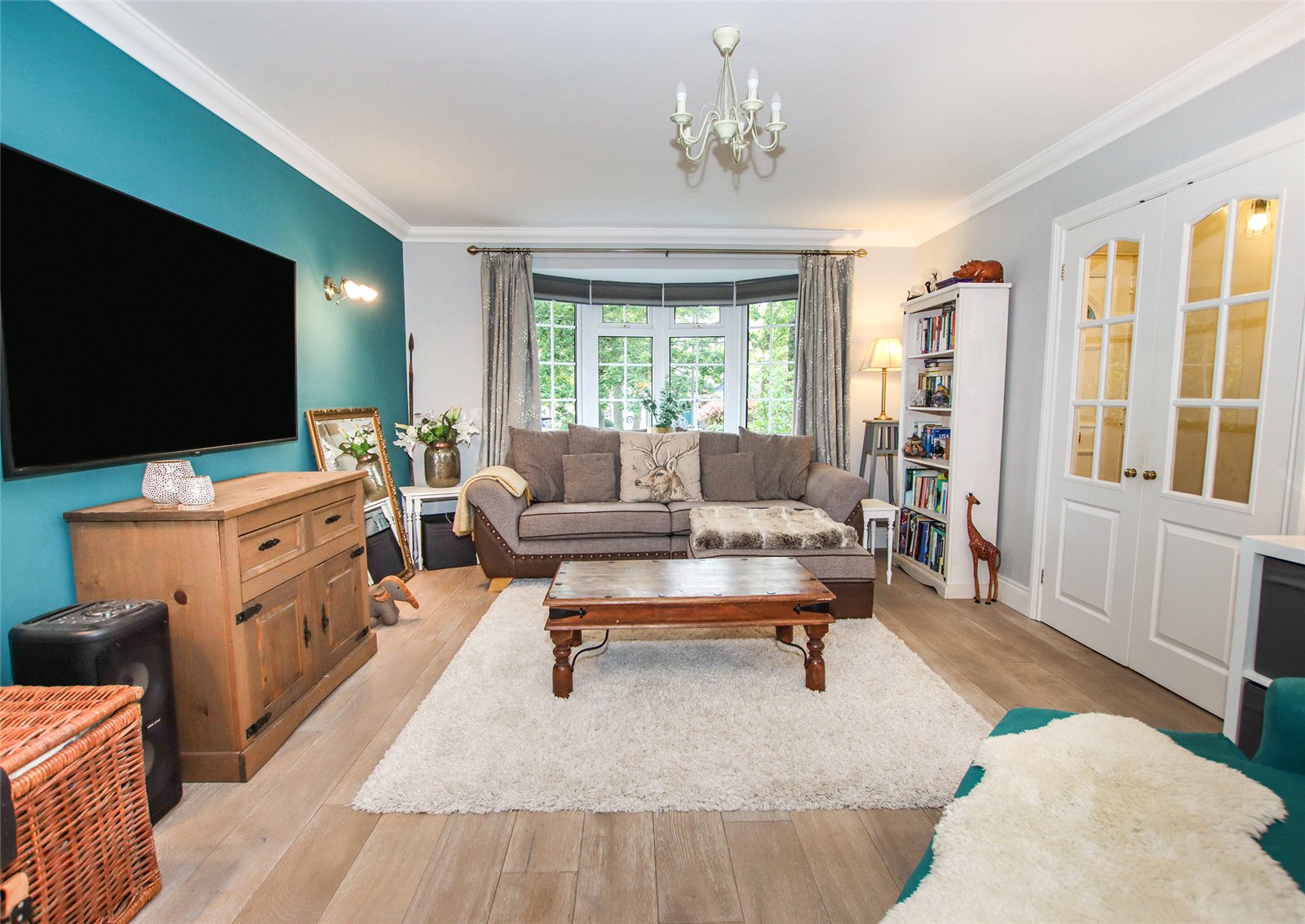 Outside, the property enjoys a lawned front garden with mature shrubs, which continue attractively along the side of the house.